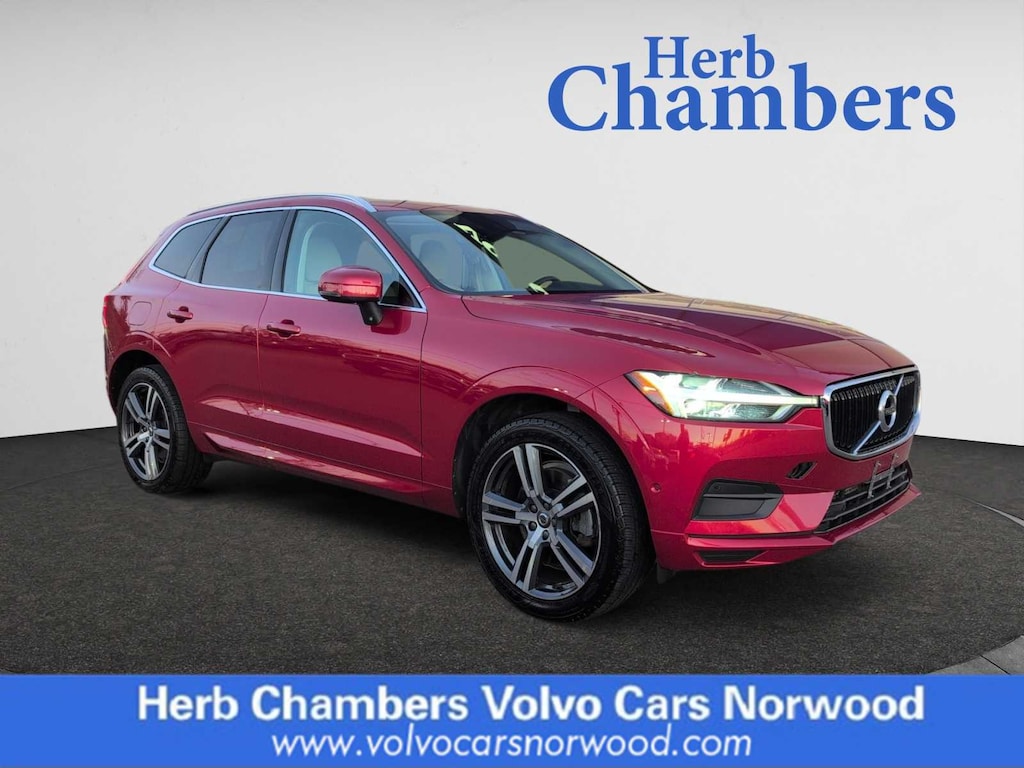 Sunroof, Panoramic Roof, All Wheel Drive, Power Liftgate, Heated Driver Seat, Back-Up Camera, Satellite Radio, iPod/MP3 Input, Onboard Communications System, Aluminum Wheels, Dual Zone A/C, Brake Actuated Limited Slip Differential, WiFi Hotspot, Cross-Traffic Alert, Smart Device Integration Rear Spoiler, MP3 Player, Keyless Entry, Privacy Glass, Remote Trunk Release. Volvo Momentum with Fusion Red Metallic exterior and Blond/Charcoal interior features a 4 Cylinder Engine with 316 HP at 5700 RPM*. CARFAX 1-Owner 5-Day 100% Money Back Guarantee / 30-Day 1,500 Mile Vehicle Exchange and, A complete Vehicle Portfolio & CarFax. Visit www.herbchamberssmartpricing.com for complete details. Only a Herb Chambers CERTIFIED Pre-Owned vehicle receives a rigorous Multi-Point Inspection This XC60 is priced $900 below J.D. Power Retail.